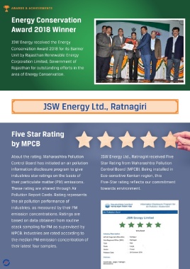 About the rating: Maharashtra Pollution JSW Energy Ltd., Ratnagiri received Five efforts and achievements.