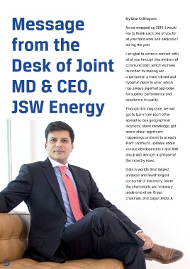Message My Dear Colleagues, JSW Energy has occupied a with full conviction, the Further, to earn the respect and