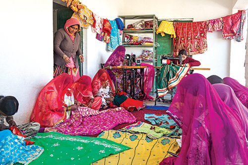 190 women from 14 SHGs were trained in applique, mukka work and pottery item making. They are now able to earn `40/hour of work.